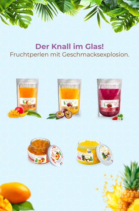 Die Popping Boba in Bob platzen im Mund und setzen den enthaltenen Fruchtsaft frei.